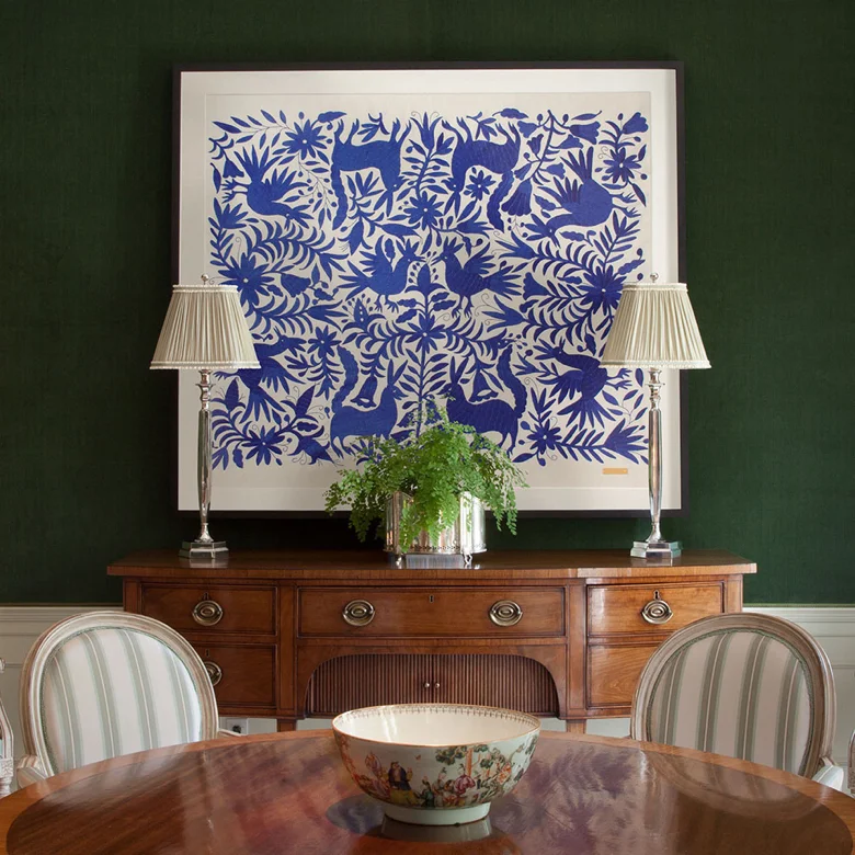 The firm began by offering framed textiles as a unique art form, and then quickly expanded to pillows, table linens and home accessories sourced from all over the world. Some of their offerings are one-of-a-kind vintage pieces. The rest are handcrafted by artisans.